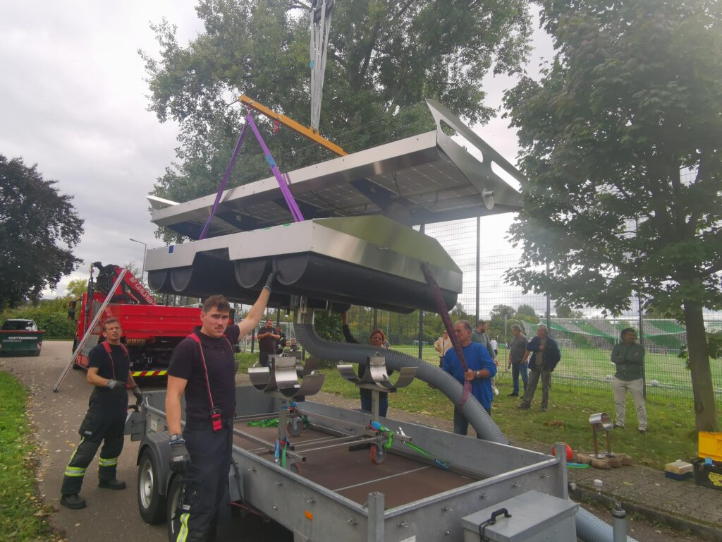 In dieser Situation zeigte sich, wie entscheidend moderne Umwelttechnik für die langfristige Regeneration von Gewässern sein kann. Die Firma EKS Anlagenbau – aquamotec aus Freudenstadt, reagierte binnen kürzester Zeit auf den Hilferuf aus Karlsruhe. Zu erwähnen sei hierbei auch die Sportfischervereinigung Knielingen 1923 e.V., welche schon seit 2011 ! eine Anlage von aquamotec betreibt, sehr zufrieden ist und durch welche der Kontakt zum Naturseeeigentümer hergestellt wurde.