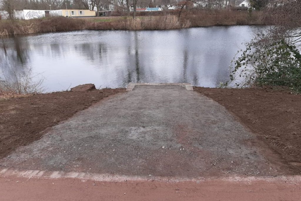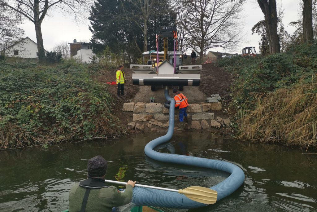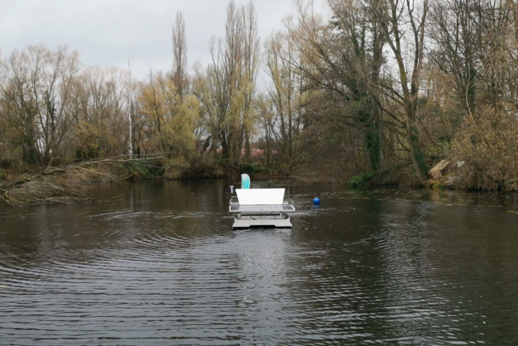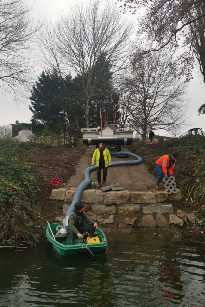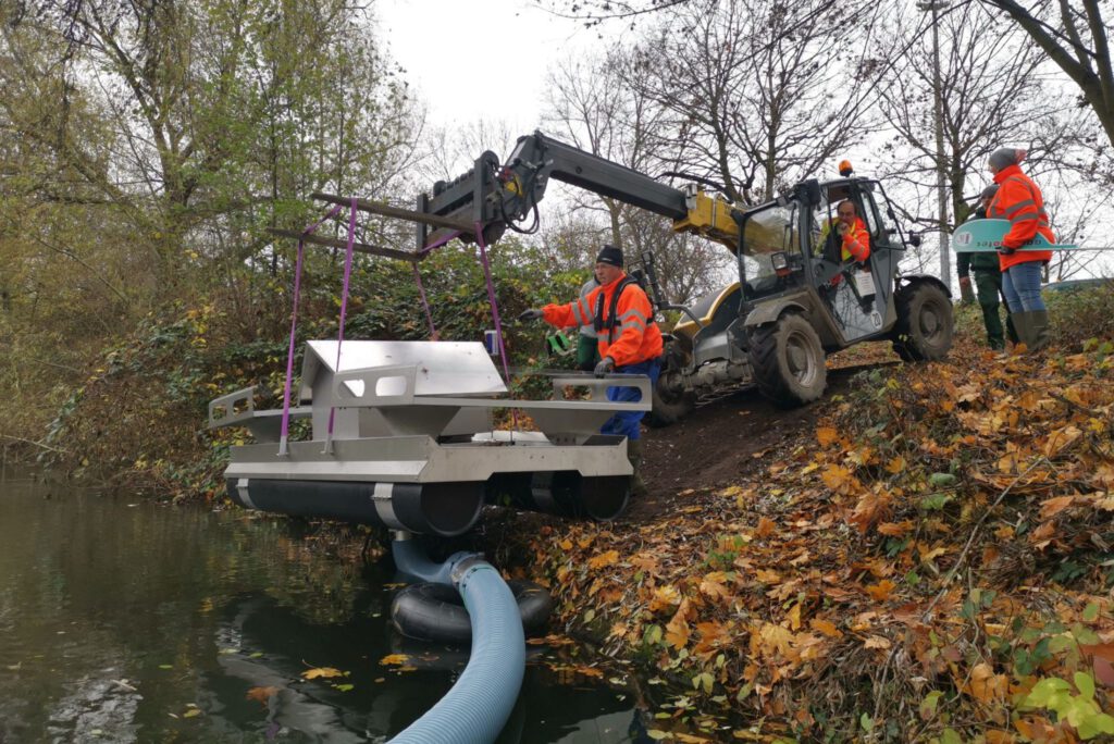 Ungewöhnlich, dass wir Mitte Januar bereits die 1. Anlage des Jahres einbauen können. In Darmstadt haben 3 Faktoren für eine problemlose Installation gesorgt: Zunächst hat der milde Winter 2019/ 2020 für weithin eisfreie Gewässer gesorgt, so daß die Einbringung und Posititionierung der Solaranlage zügig und gefahrlos möglich war. Dazu kam noch, dass die Stadt Darmstadt eine perfekte Rampe angelegt hat, über die wir die Regenerationsanlage in kürzester Zeit zu Wasser lassen konnten. Und nicht zuletzt, eine gute Vorbereitung und tatkräftige Unterstützung durch den Kunden hat uns sehr geholfen.