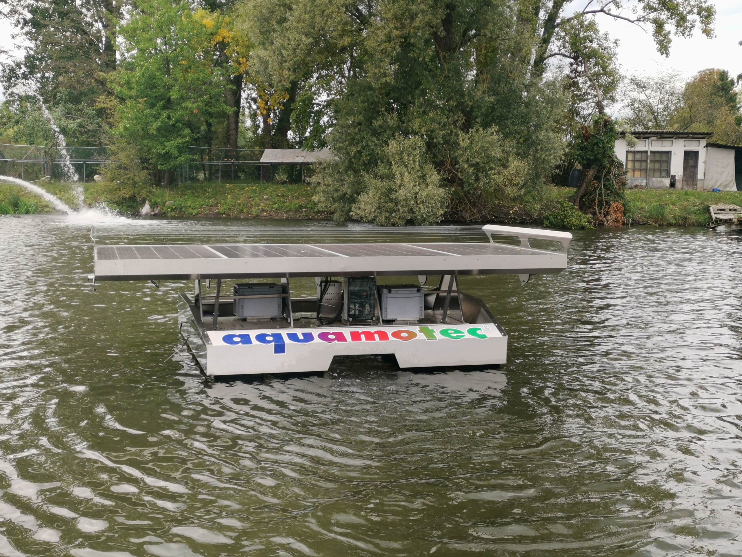 Unser System arbeitet nach dem Prinzip der Zwangszirkulation und sorgt dafür, dass sauerstoffreiches Oberflächenwasser in tiefere Schichten gelangt, während sauerstoffarmes Tiefenwasser an die Oberfläche befördert und dort mit Luft angereichert wird. So entsteht ein dauerhaft ausgeglichener Sauerstoffhaushalt – ganz ohne externe Energiezufuhr, denn die Anlage arbeitet CO₂-neutral und solarbetrieben.